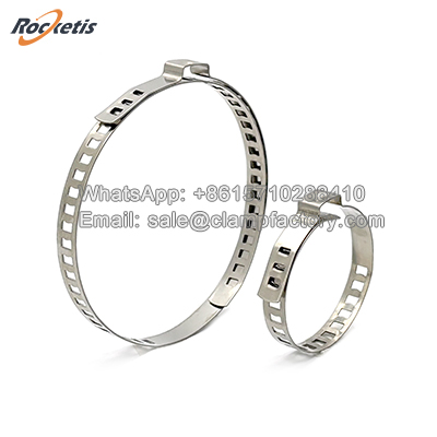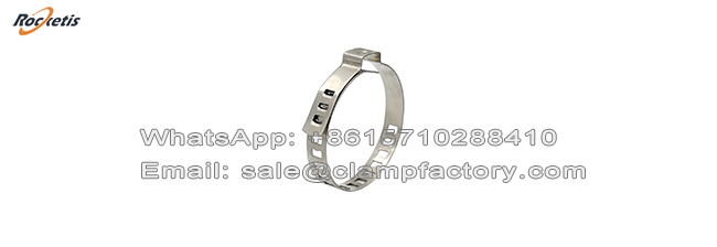 Stainless Steel Single Ear Adjustable Circular Clamps are innovative fastening devices designed for securing hoses, pipes, and flexible connectors in applications where traditional worm-drive clamps are unsuitable. Unlike screw-based clamps, these utilize a unique spring-loaded, latch-based mechanism that allows for quick, tool-free installation and adjustment while maintaining a constant, vibration-resistant seal. They combine the convenience of adjustability with the reliability of a screw-less, low-profile design.
