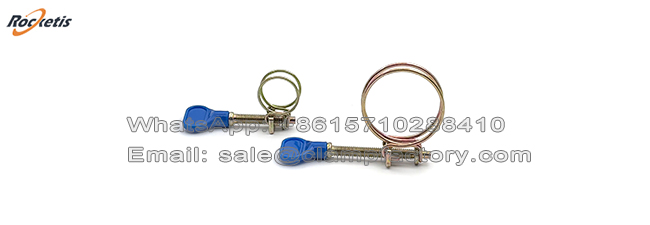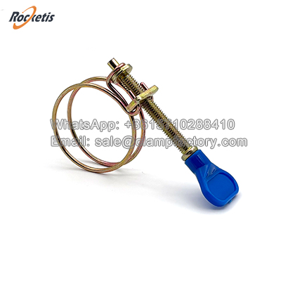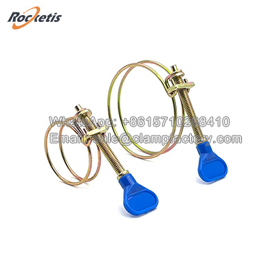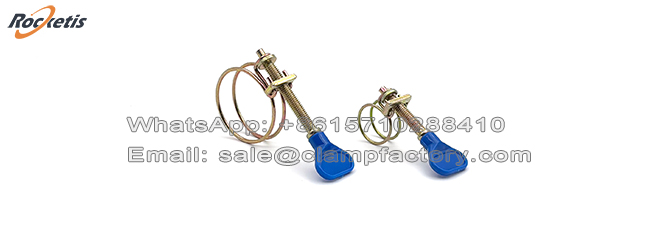 A Yellow Zinc-Plated Double Wire Hose clips with Thumb Handle is a user-friendly, light-duty adjustable clamp that combines the simple wire band design with a convenient, tool-free thumb-operated screw. Its distinctive yellow chromate coating provides enhanced corrosion protection and a visual identifier over standard zinc plating.